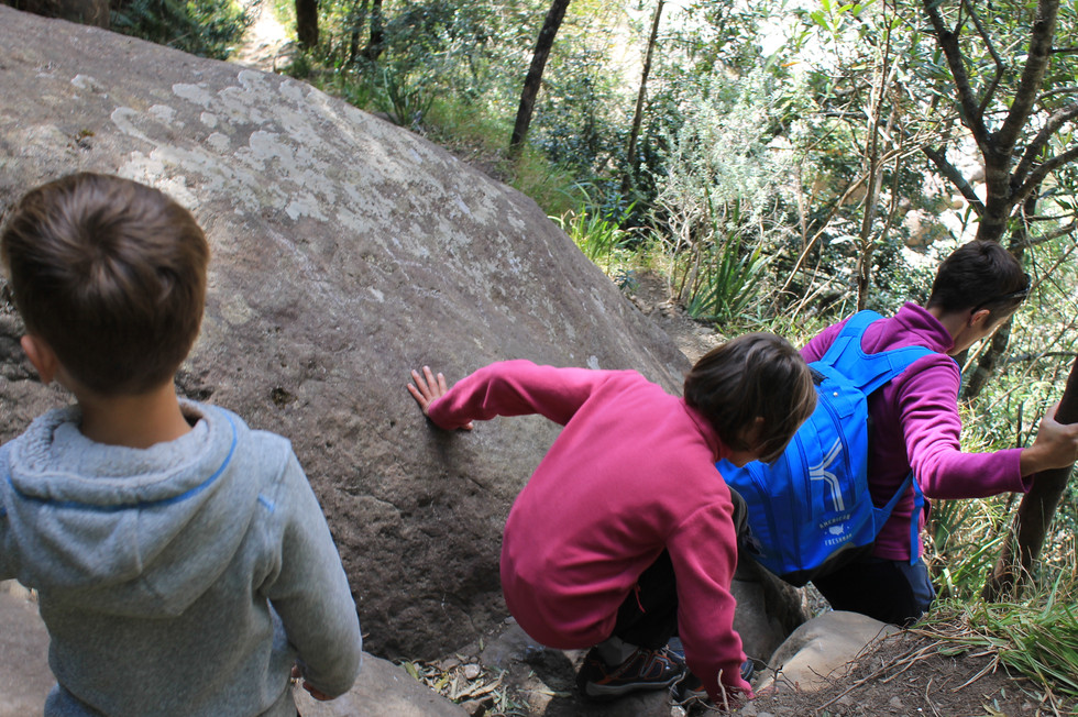 C’est là que Juno trouvera le moyen de tomber les fesses dans l’eau et de se cogner la tête sur la paroi rocheuse. Heureusement plus de peur que de mal. Je regarde sa tête pour voir s’il n’y a rien de grave et là je découvre un tique planté à l’arrière de son crâne. On suppose qu’il vient de se mettre là car il n’est pas encore gonflé de sang. On l’enlèvera plus tard pour l’instant on n’est pas équipé. On se fait une pause sur un rocher au soleil pour manger un petit cookie.