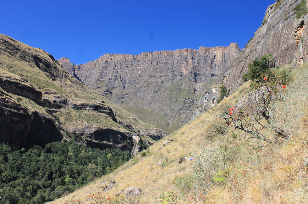 Normalement nous devrions voir les Tugela falls (850m de hauteur sur 5 paliers, les 2èmesplus hautes du monde) seulement il n’y a pas d’eau.