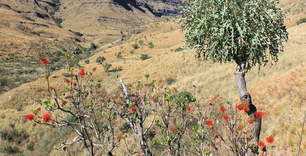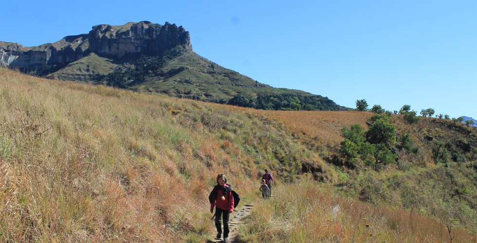 Nous avançons bon train en croisant oiseaux et babouins. Cette marche est assez facile car elle ne monte pas et la vue sur l’Amphithéâtre (falaise bordant une gorge sur 5 km) qui nous surplombe est splendide.