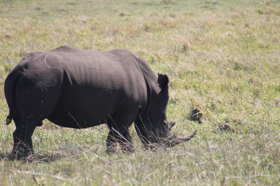 Puis 5 minutes plus tard par 2 rhinocéros sur le bord de la route en train de brouter de l’herbe. Les enfants sont aux anges.