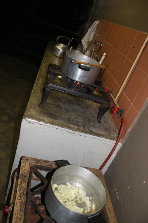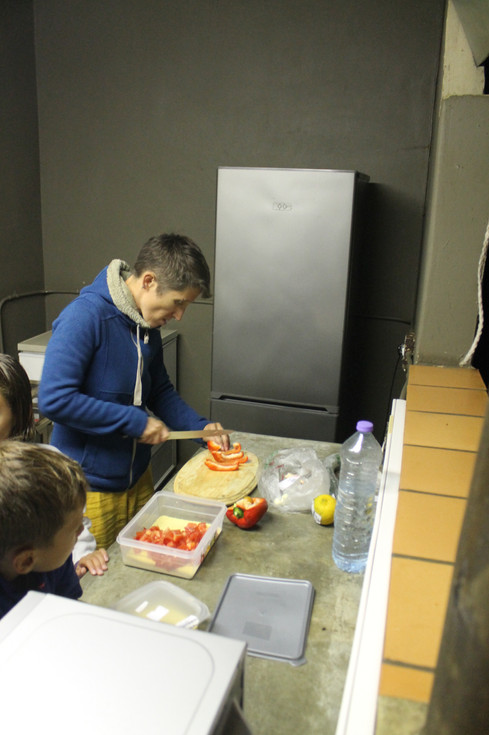 Ce soir on fais grillades et riz sauce tomate poivron les enfants participe à la préparation, super, mais le feu est long à allumer avec seulement des feuilles et des brindilles pour démarrer....Mais Yannou y arrive. Préparation également du taboulé pour demain midi...