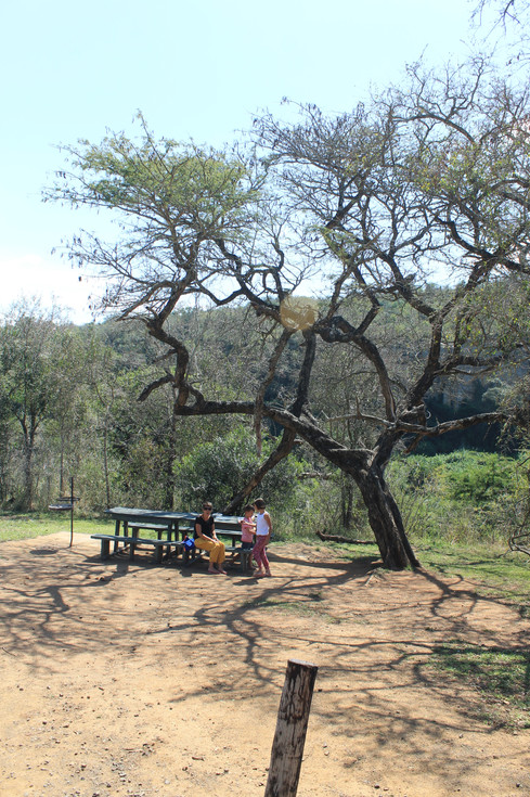 On s’arrête sur une aire de pique nique pour manger à l’heure de midi. On en profite pour se mettre un peu à l’ombre car il fait chaud (28°). On tentera de goûter un fruit un peu bizarre qui ressemble à une orange à première vue, mais ce n'est pas du tout ça et il finira dans le bush....