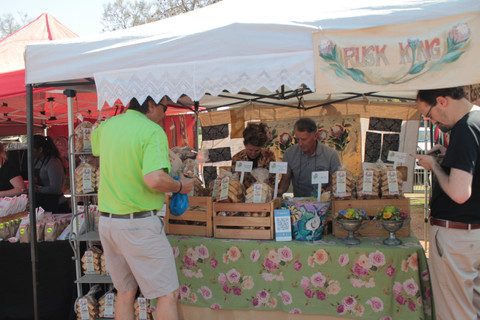Ambiance décontractée avec un mélange de hand craft market et food market. Les gens de Prétoria viennent là pour prendre un petit déjeuner et se rassemblent au milieu du marché sur des tables pour discuter.